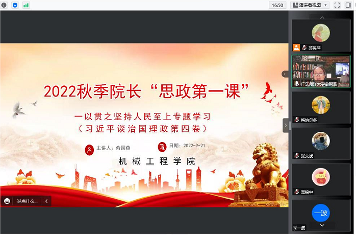 9月29日下午,纽约国际967线路测试党委书记李国芳通过腾讯会议作了题为《学深悟透(习近平谈治国理)第四卷》的思政第一课,全院团学干部、党员及入党积极分子共298人听课。李国芳介绍了《习近平谈治国理政》第四卷的总体框架和主要内容以及重要意义。并从把握“两个确立” 做到绝对忠诚、把握“两个结合”坚定理想信念、把握“两个大局”坚持敢于斗争、把握“两件大事”强化责任担当、把握“两个答案”永葆先进本色阐述了研读《习近平谈治国理政》第四卷的要求和体会。最后,他希望同学们一定要刻苦学习、掌握知识、锻炼能力、提升本领,弘扬伟大建党精神,发挥先锋模范作用,不断打下坚实的思想政治基础和知识理论基础。